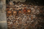 Am Vormittag jenes Tages hatten wir bereits einen völlig anderen Umgang mit den Toten erlebt. Wir hatten die Katakomben von Paris besucht – endlos lange Bergwerksstollen, die als Steinbrüche dienten. 300 Kilometer an heute erforschten Gängen ziehen sich in bis zu 35 Metern Tiefe durch die Stadt. Als ab 1785 viele Friedhöfe im Zuge des Stadtumbaus geschlossen wurden, schaffte man schrittweise die Gebeine von sechs Millionen Toten in die unterirdischen Räume. Schädel und Knochen wurden erst ungeordnet, dann nach dekorativen Gesichtspunkten aufeinandergeschichtet.